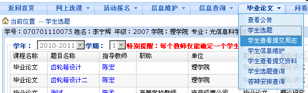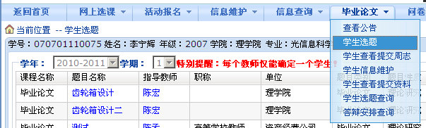 该功能主是要学生进行毕业设计选题,菜单如下: