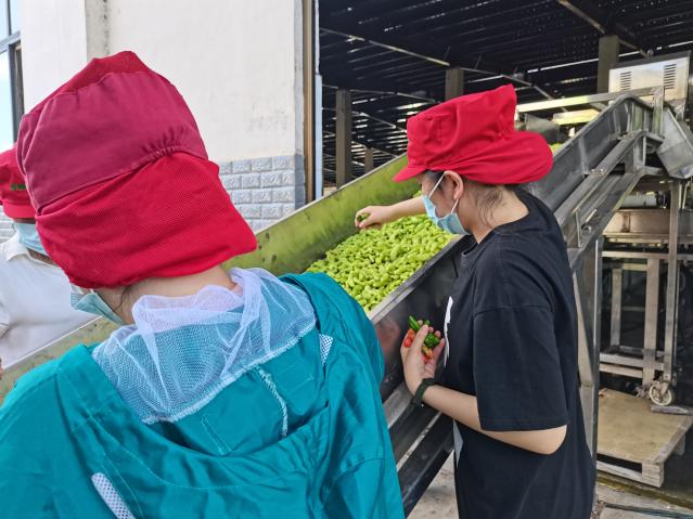 实践队员在贵州统之源食品有限公司的相关负责人带领下,切身学习如何修剪产品包装,了解辣椒原料来源,辣椒产品的物流运输等内容。实践队员在中兴农业开发有限公司深入生产线,参与辣椒的分级筛选等环节。