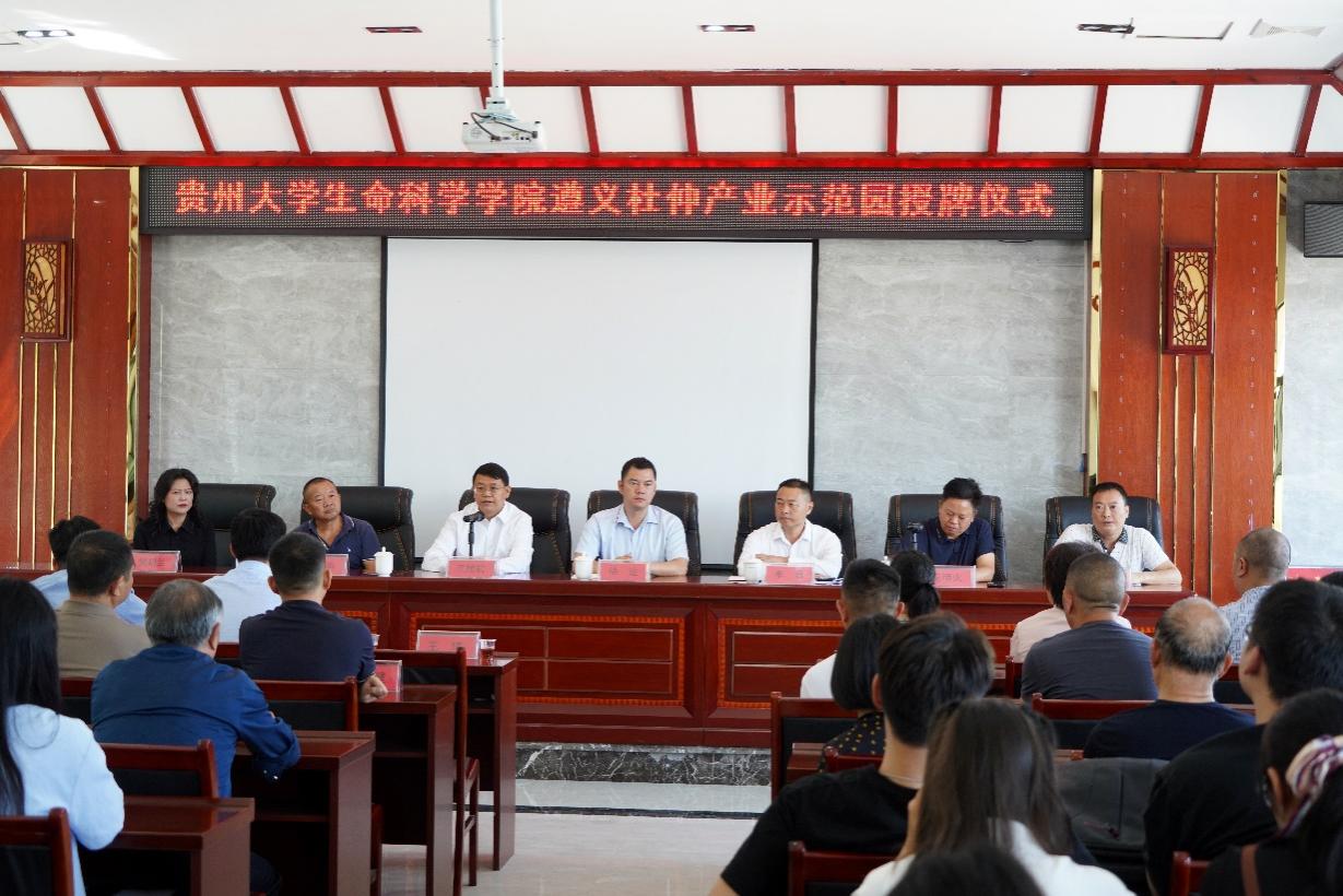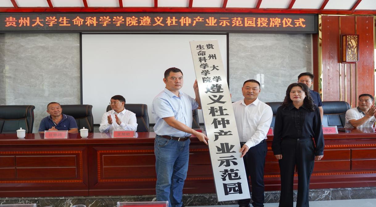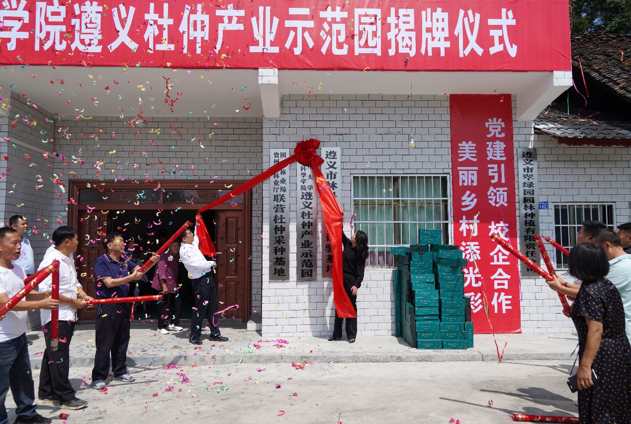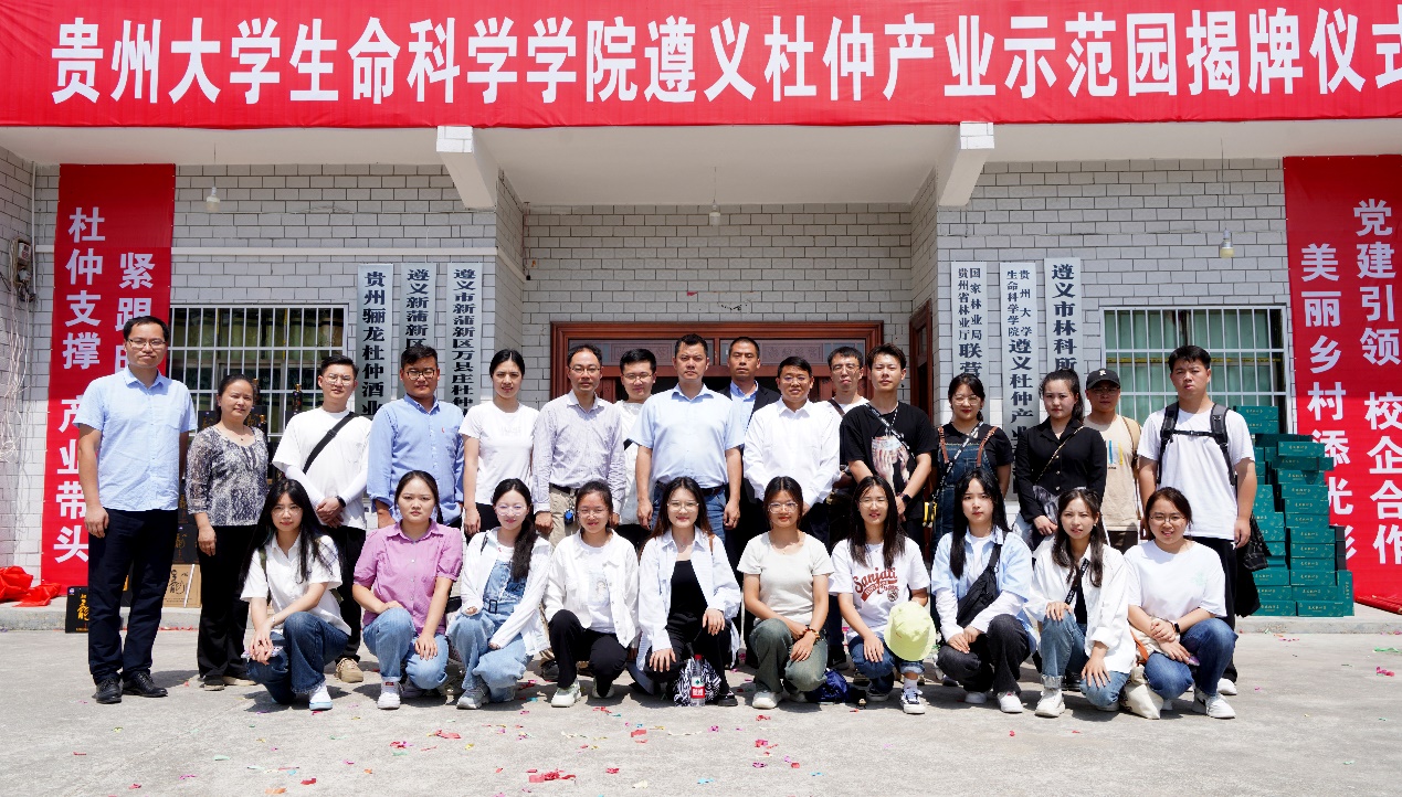 为贯彻落实党的乡村振兴重大战略部署,助力贵州遵义全面建成小康社会,在王旭初教授的组织策划下,beat365手机版官方网站徐进书记带领师生一行40余人,于2023年09月16日前往遵义新蒲新区虾子镇万县庄杜仲林场,顺利完成beat365手机版官方网站遵义杜仲产业示范园挂牌仪式!
