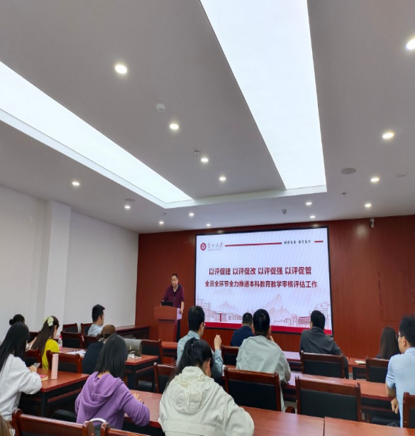 学院于2024年5月11日在崇德楼324会议室召开全院教职工大会,学院党委书记徐进主持会议,学院全体教职工参加会议。会上,江龙副院长再次对全院教职工详细讲解了本科教育教学审核评估的内涵,并对相关工作进行了安排,院长吕立堂强调全院教职工必须“全员参与,人人重视,人人行动”。