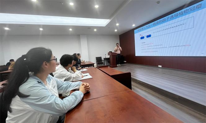 教学试讲与研讨环节,生态学教研室青年教师周叶鸣特聘副教授讲授了《真菌学》课程第八章的教学节段,周叶鸣老师围绕“农杆菌”授课内容,以直观清晰的多媒体课件,娓娓道来,讲解了农杆菌的发现、研究动态及其生态学意义。试讲结束后,参会人员针对周叶鸣老师的授课内容,围绕各自在课堂教学的经验和方法,进行了广泛且深入的研讨。生态学教研室杨建松副教授作为老教师代表,对青年教师如何脱离课本、内化课程内容、创新课堂模式、激发学生兴趣、提高课堂教学质量分享了宝贵经验;《真菌学》课程负责人邹晓教授针对此次试讲的课程内容,对周叶鸣老师如何把控教学内容、深入浅出授课知识点、完善课程体系架构提出了具体要求;教务处督导谭艾娟教授结合自身多年从事教育教学管理和一线教学的教学经验,对如何提高课堂教学水平,全面落实“以本为本”“三全育人”的教育理念,在课堂教学中深入体现“以学生为中心”的人才培养要求,对生态学教研室全体教师提出了殷切希望。