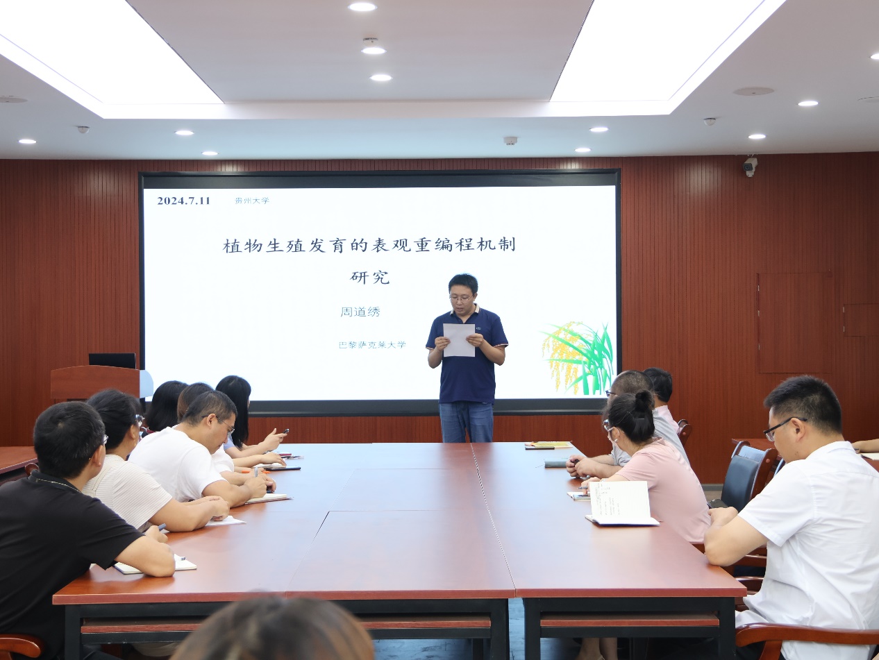 2024年7月11日上午,应学院邀请,巴黎萨克莱大学/华中农业大学周道绣教授以“植物生殖发育的表观重编程机制研究”为题作了精彩的学术报告。报告由beat365手机版官方网站副院长胡国雄教授主持,农业生物工程研究院常务副院长文晓鹏教授出席,全院师生共60余人参加。