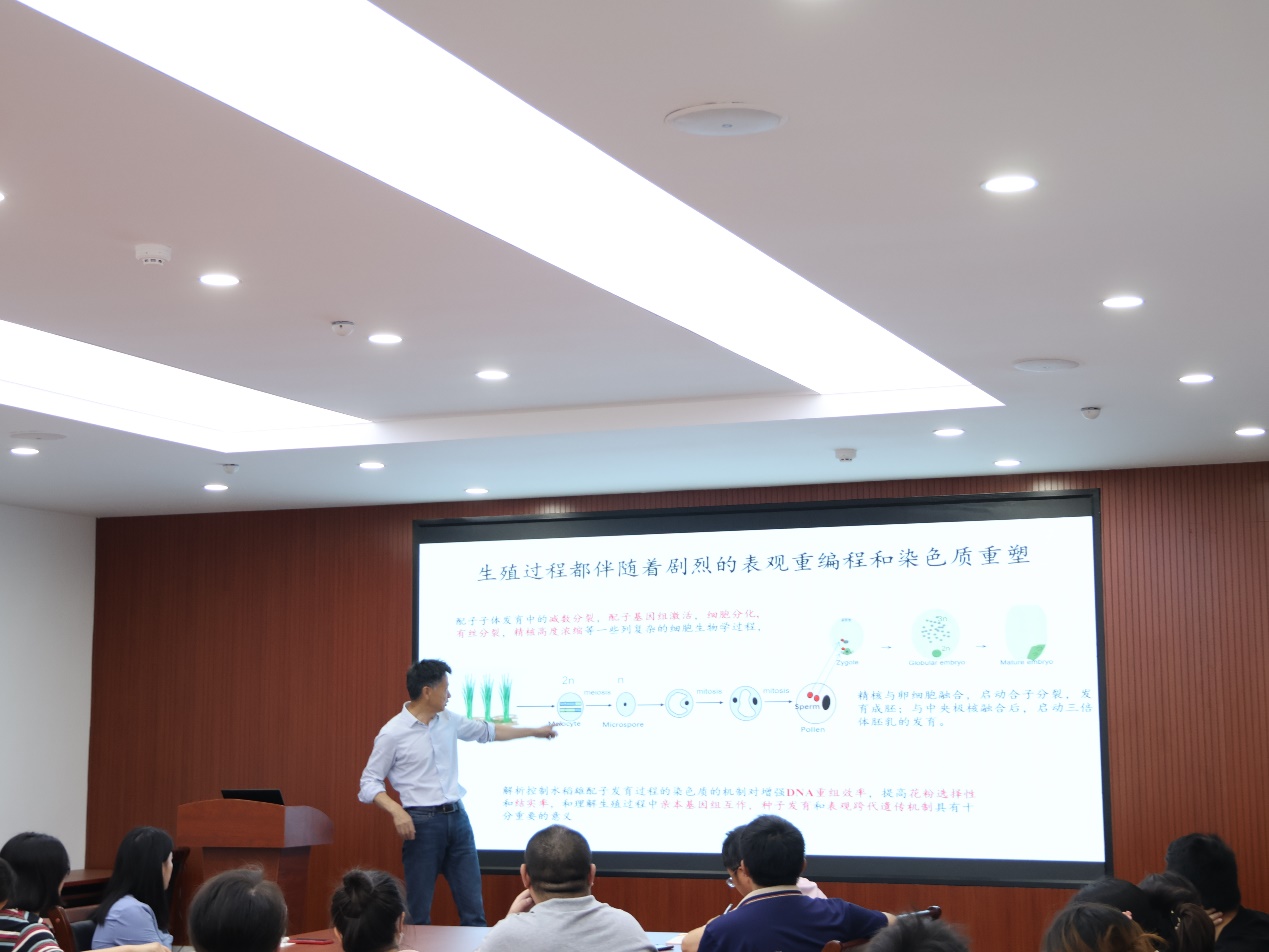 在报告中,周道绣教授以水稻为研究对象,从精、卵和合子单细胞染色质三维空间结构,受精前后表观重编程机制,受精后合子表观基因组重建机制以及雄配子体发育过程中表观重编程机制等四个方面详细介绍了水稻生殖细胞中核基因的表观遗传编程机制。