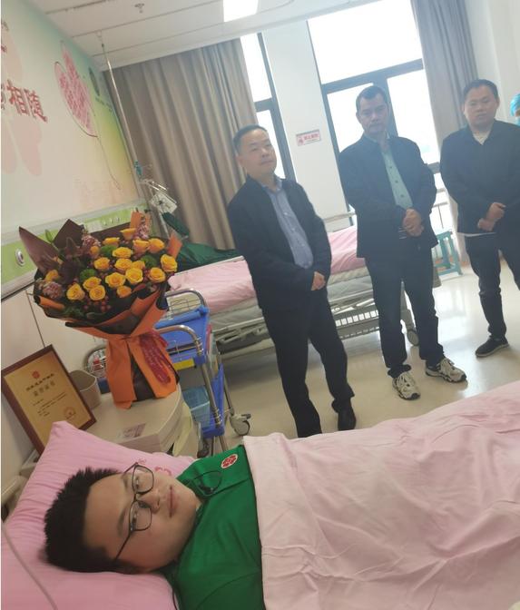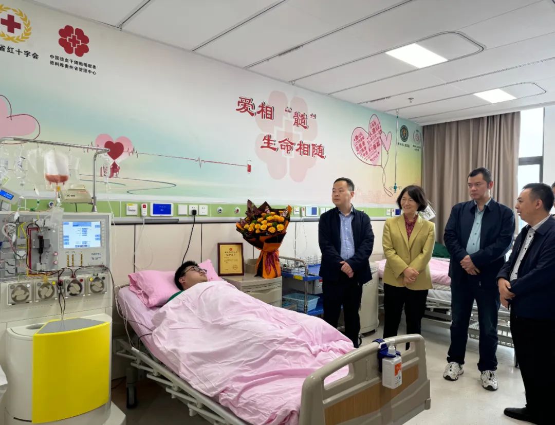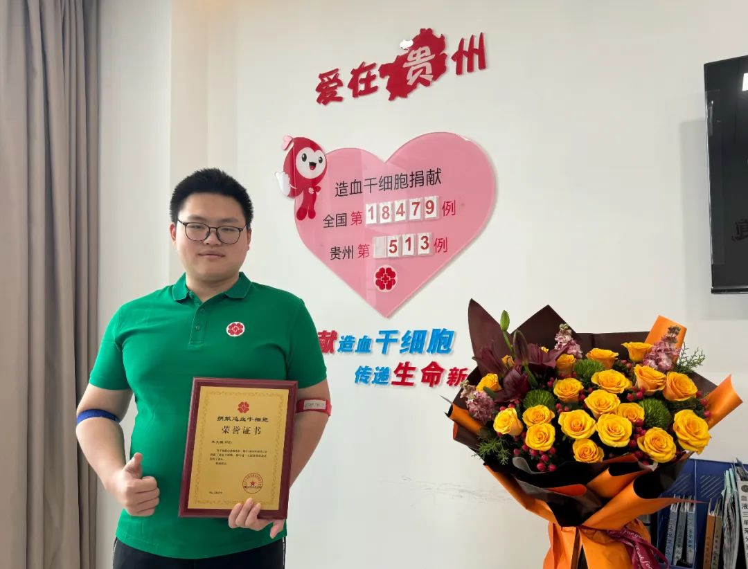 一个“00后”,一个不满1岁的小生命;一个在贵州,一个远在千里。这样两位互不相识、互无关联的人,因为一种特殊的方式“血脉相连”。当天上午,省红十字会党组成员、专职副监事长戴世驹,beat365手机版官方网站党委书记徐进到捐献现场看望小朱,为他颁发了捐献造血干细胞荣誉证书,并献上鲜花,对其大爱行为表示感谢。小朱是beat365手机版官方网站大四学生,2023年6月在了解到造血干细胞捐献相关知识后,就采样登记加入中华骨髓库,成为一名造血干细胞志愿捐献者。