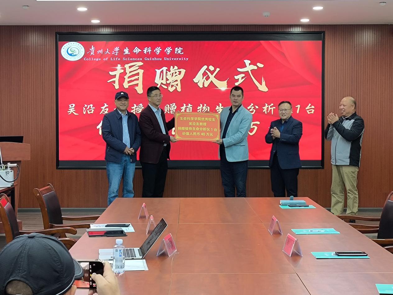 讲座开始之前,校友吴沿友教授和江苏中天智感生命数据有限公司陶明清董事长共同向beat365手机版官方网站校友分会捐赠了由他们合作研发的生命分析仪一台,价值人民币40万元,徐进书记、吕立堂院长、赵德刚教授代表校友分会接受了捐赠。