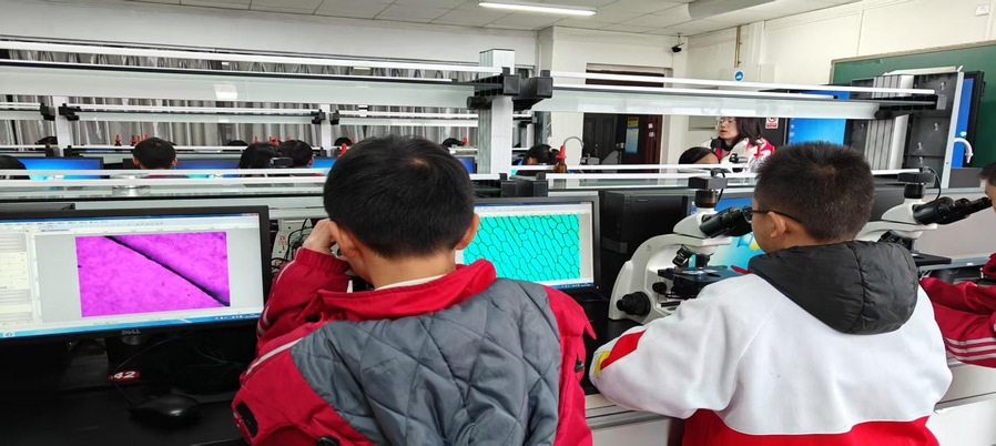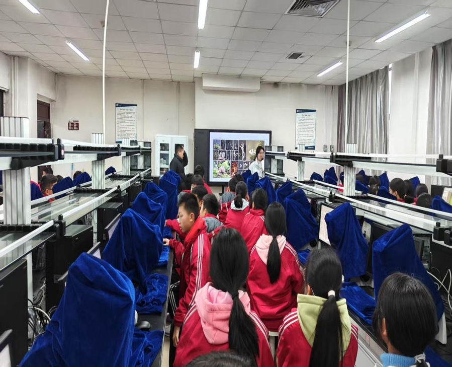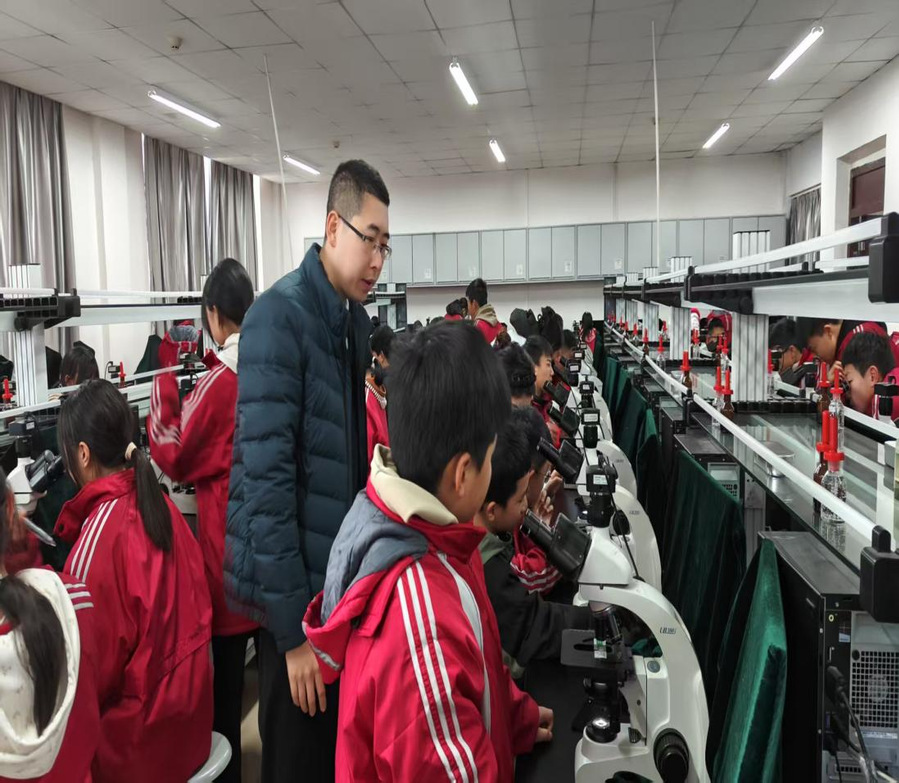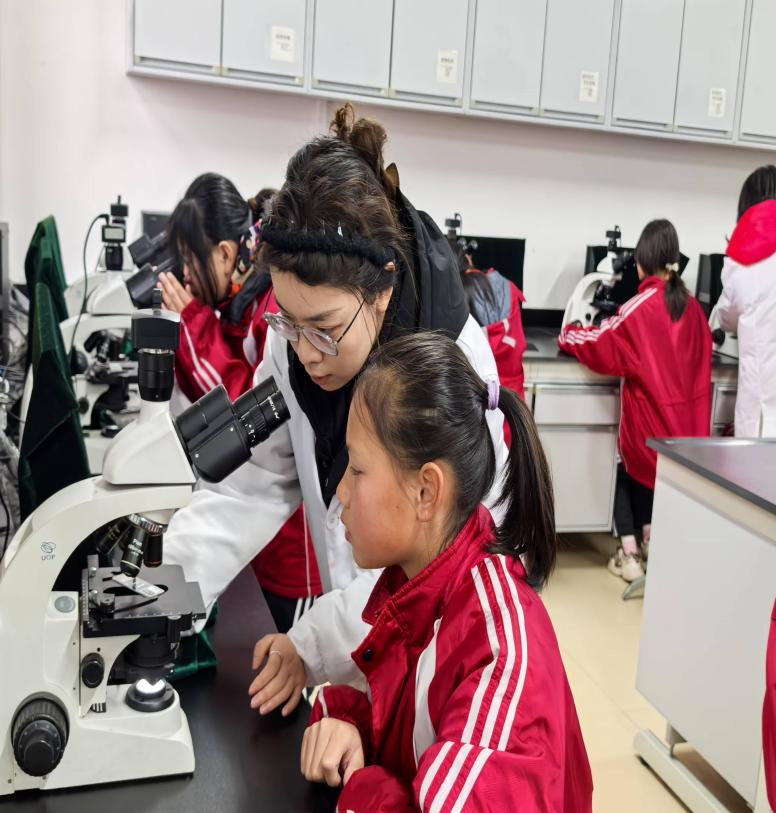 活动的最后一个环节是植物细胞的显微观察实验。刘玉婷老师、韩淑梅老师及丁晨雨老师带领学生们来到明义楼511实验室,首先向同学们介绍了普通光学显微镜的使用方法及注意事项。随后,每位学生都亲自操作显微镜,对植物标本片进行了显微观察。