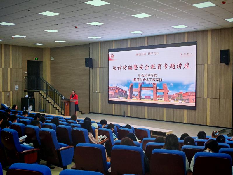 为切实增强学生安全防范意识,提升自我保护能力,2025年6月4日,beat365手机版官方网站、酿酒与食品工程学院联合开展反诈防骗暨安全教育专题讲座。本次讲座特邀贵阳市花溪公安分局松山治安派出所的赵普林警官担任主讲嘉宾,酿酒与食品工程学院党委副书记张丽华出席,讲座由生命科学学院党委副书记熊静主持。